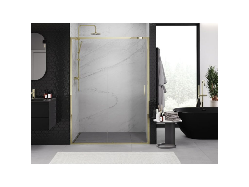 Posuvné sprchové dvere Mexen Exo 145 cm, transparentné, zlaté - 8151-145-000-50-00