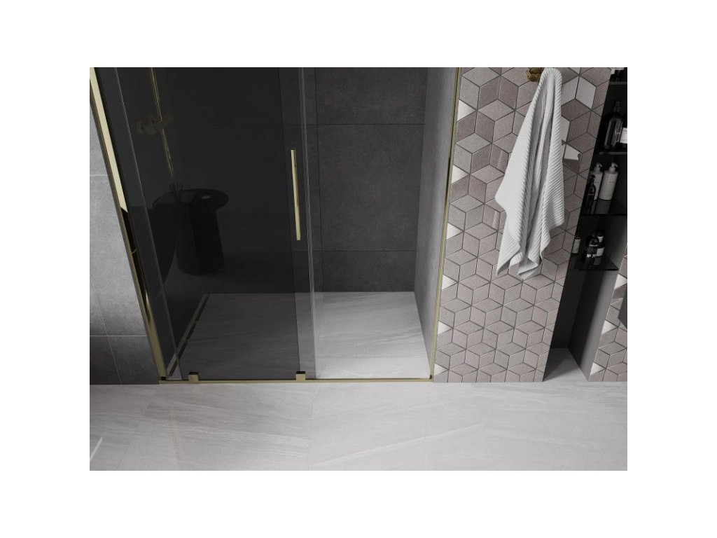 Posuvné sprchové dvere Mexen Velar 130 cm, grafit, zlatá - 871-130-000-41-50