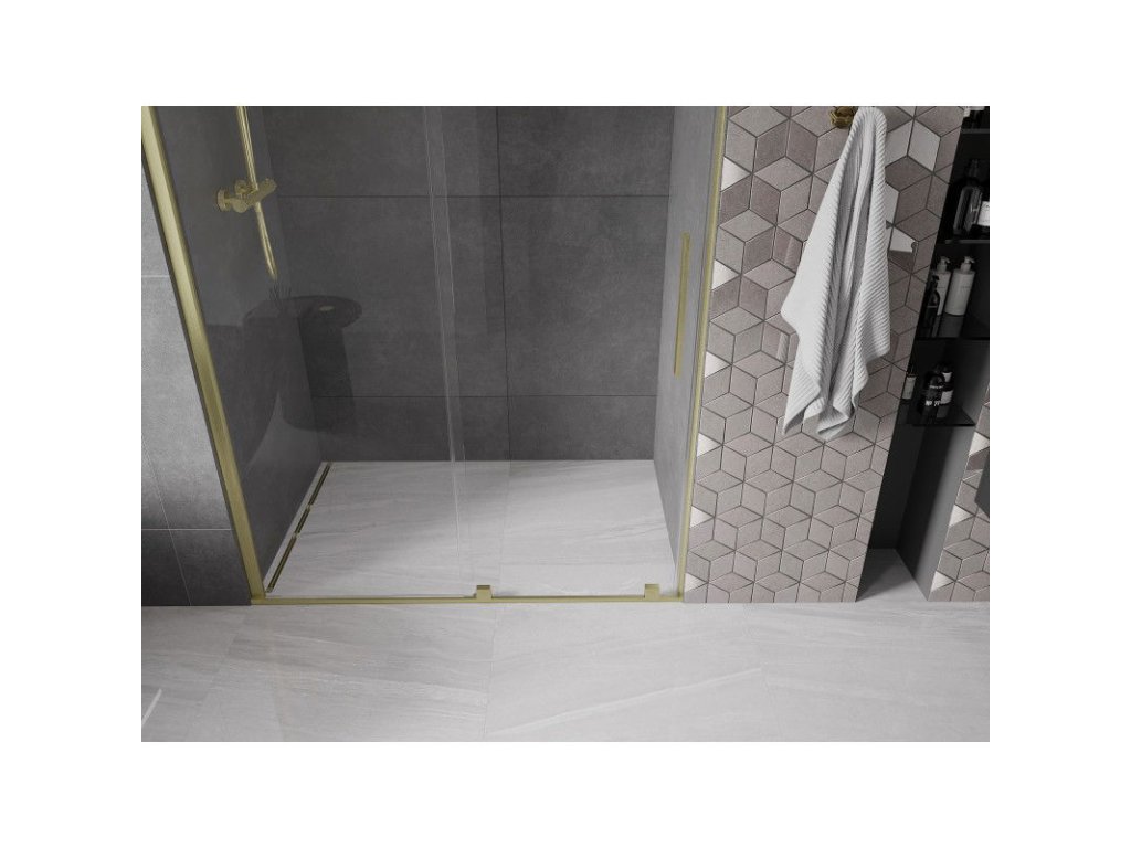 Posuvné sprchové dvere Mexen Velar 130 cm, transparentné, brúsené zlaté - 871-130-000-01-55