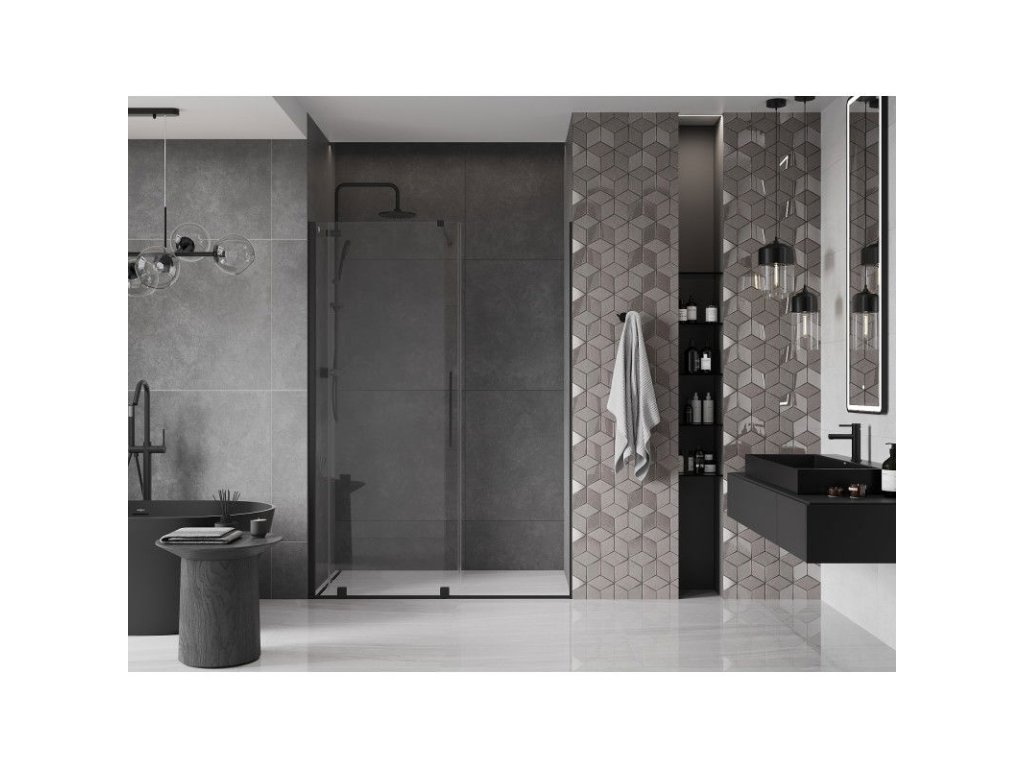 Posuvné sprchové dvere Mexen Velar 130 cm, transparentné, čierne - 871-130-000-01-70