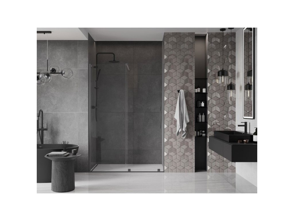 Posuvné sprchové dvere Mexen Velar 130 cm, transparentné, pištoľový kov - 871-130-000-01-95