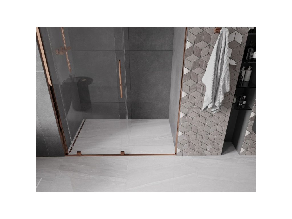 Posuvné sprchové dvere Mexen Velar 130 cm, transparentné, ružové zlato - 871-130-000-01-60