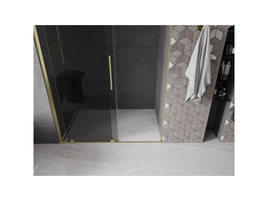 Posuvné sprchové dvere Mexen Velar 140 cm, grafit, brúsené zlato - 871-140-000-41-55