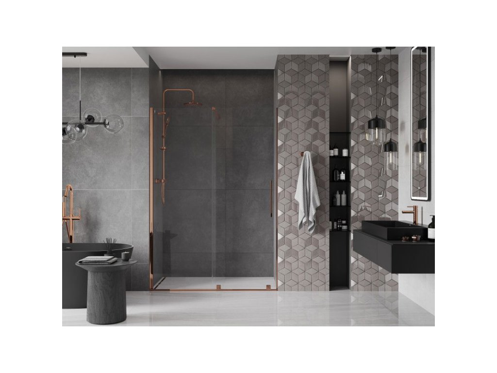 Posuvné sprchové dvere Mexen Velar 140 cm, transparentné, ružové zlato - 871-140-000-01-60