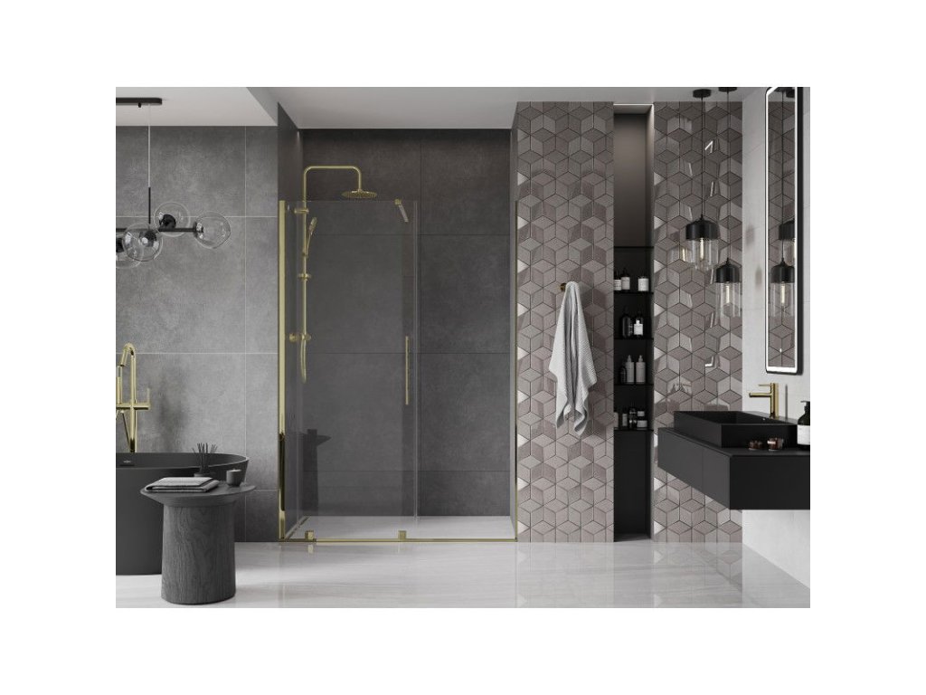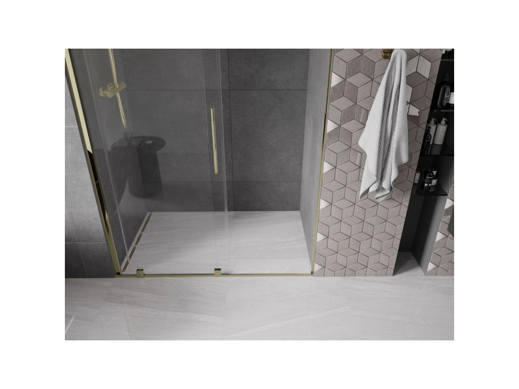 Posuvné sprchové dvere Mexen Velar 140 cm, transparentné, zlaté - 871-140-000-01-50