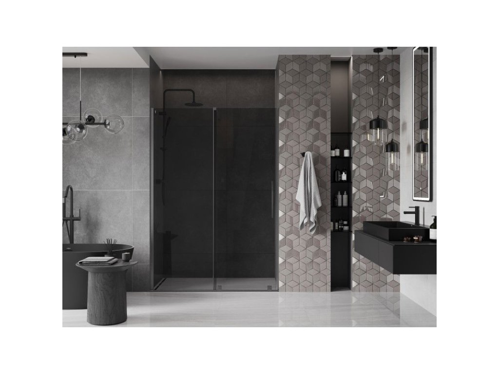 Posuvné sprchové dvere Mexen Velar 150 cm, grafit, pištoľovo sivá kartáčovaná - 871-150-000-41-66