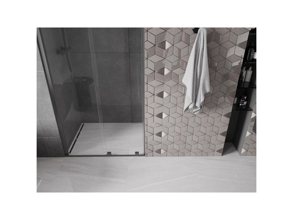 Posuvné sprchové dvere Mexen Velar 90 cm, priehľadné, pištoľovo šedé, kartáčované - 871-090-000-01-66