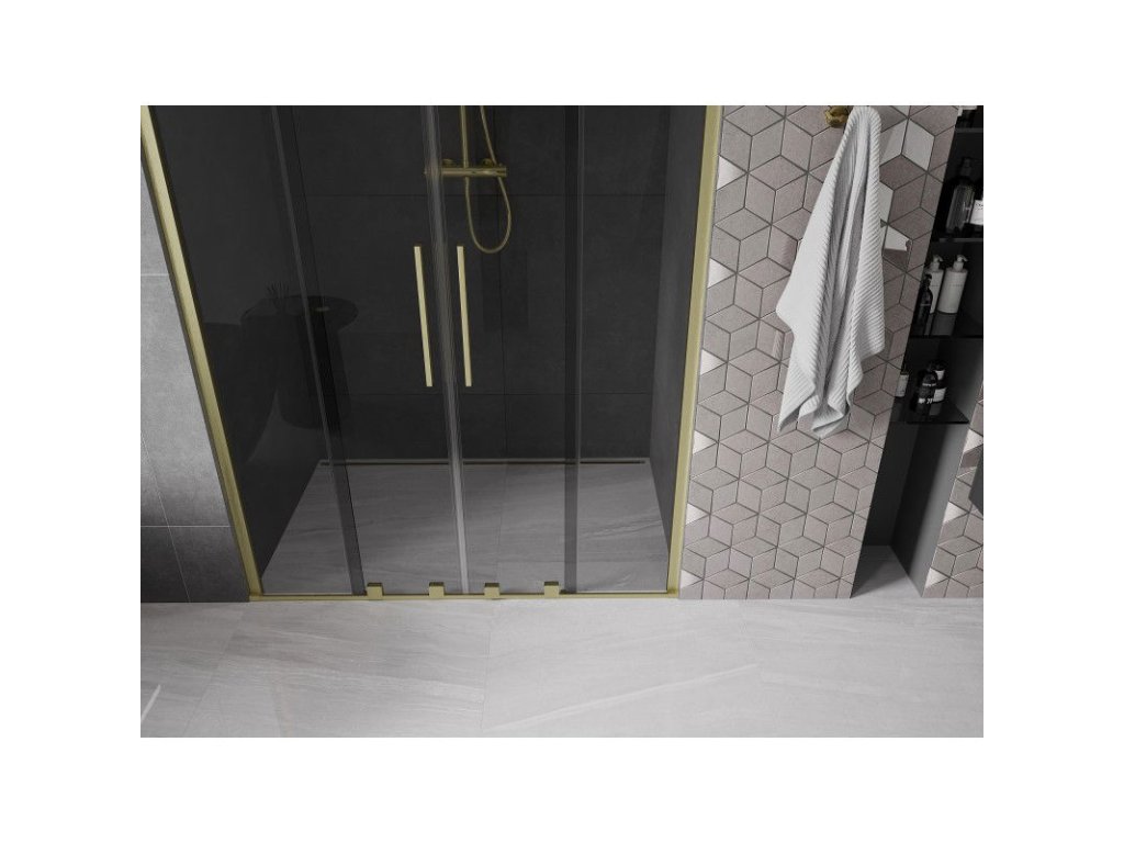 Posuvné sprchové dvere Mexen Velar Duo 140 cm, grafit, brúsené zlato - 871-140-000-42-55