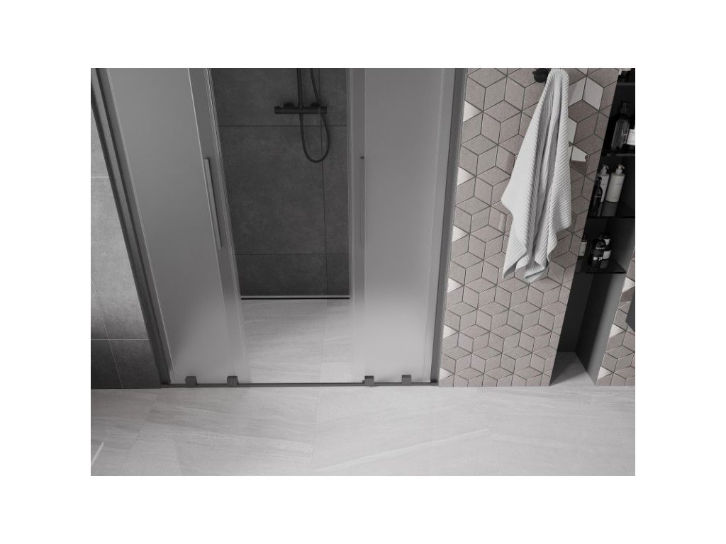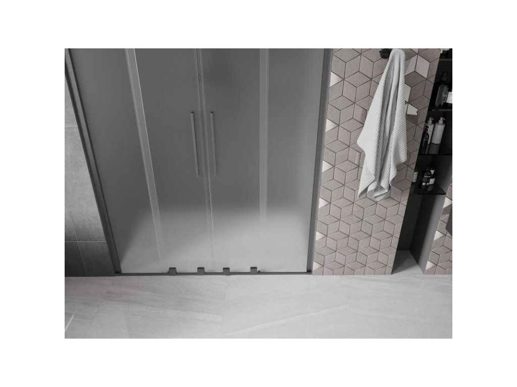 Posuvné sprchové dvere Mexen Velar Duo 140 cm, matné, pištoľovo šedé, kartáčované - 871-140-000-32-66