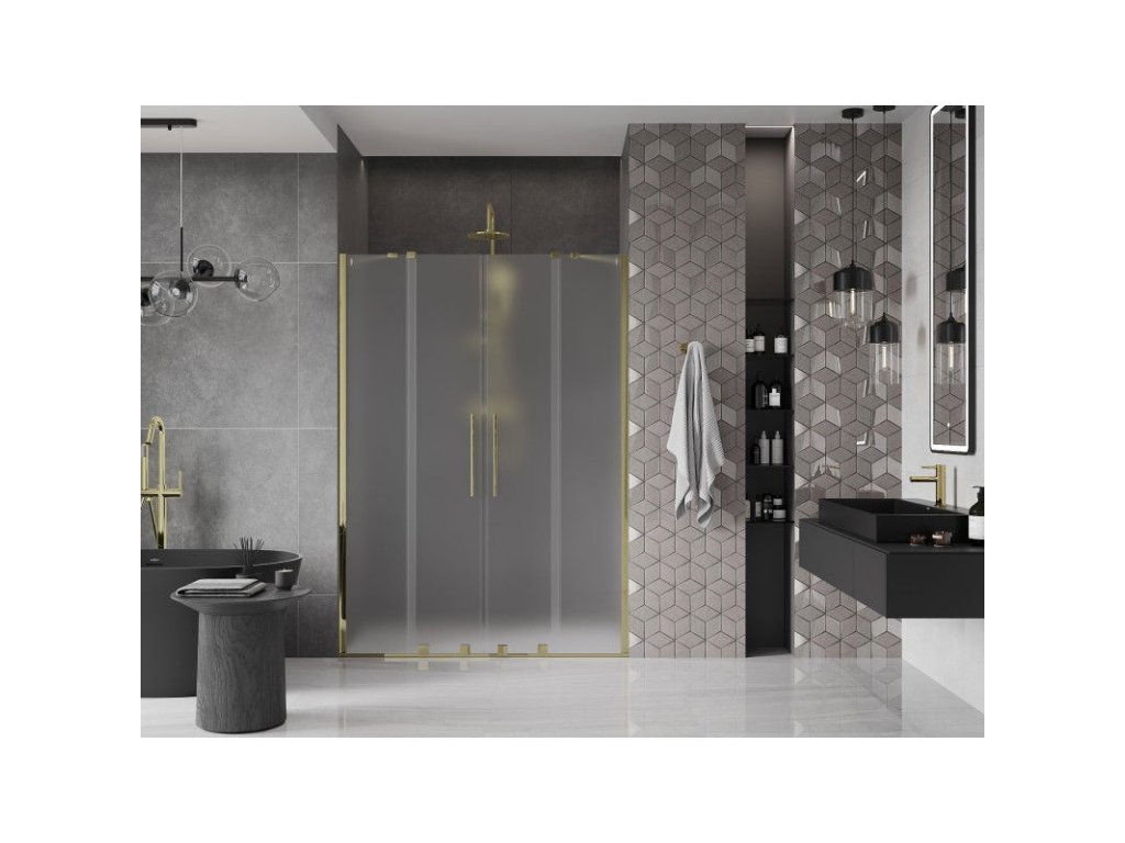 Posuvné sprchové dvere Mexen Velar Duo 140 cm, matné, zlaté - 871-140-000-32-50