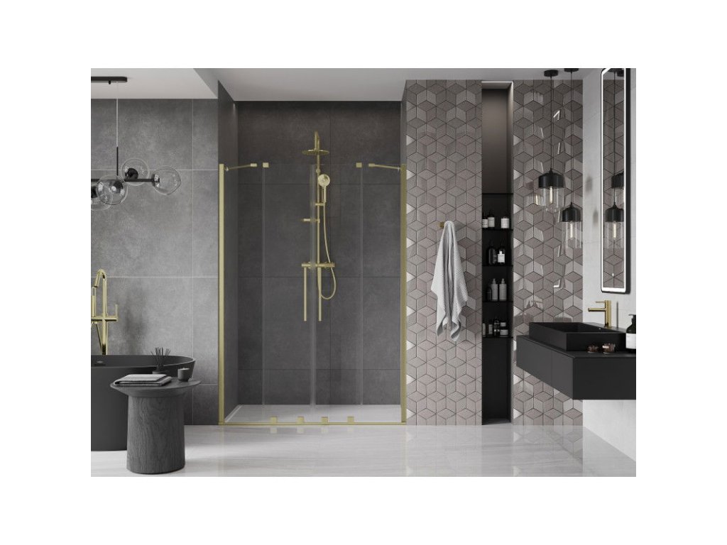 Posuvné sprchové dvere Mexen Velar Duo 140 cm, transparentné, brúsené zlaté - 871-140-000-02-55