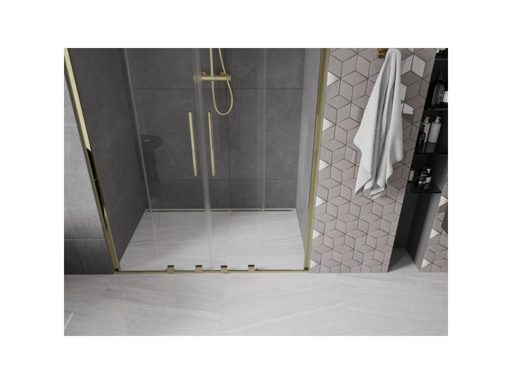 Posuvné sprchové dvere Mexen Velar Duo 140 cm, transparentné, zlaté - 871-140-000-02-50