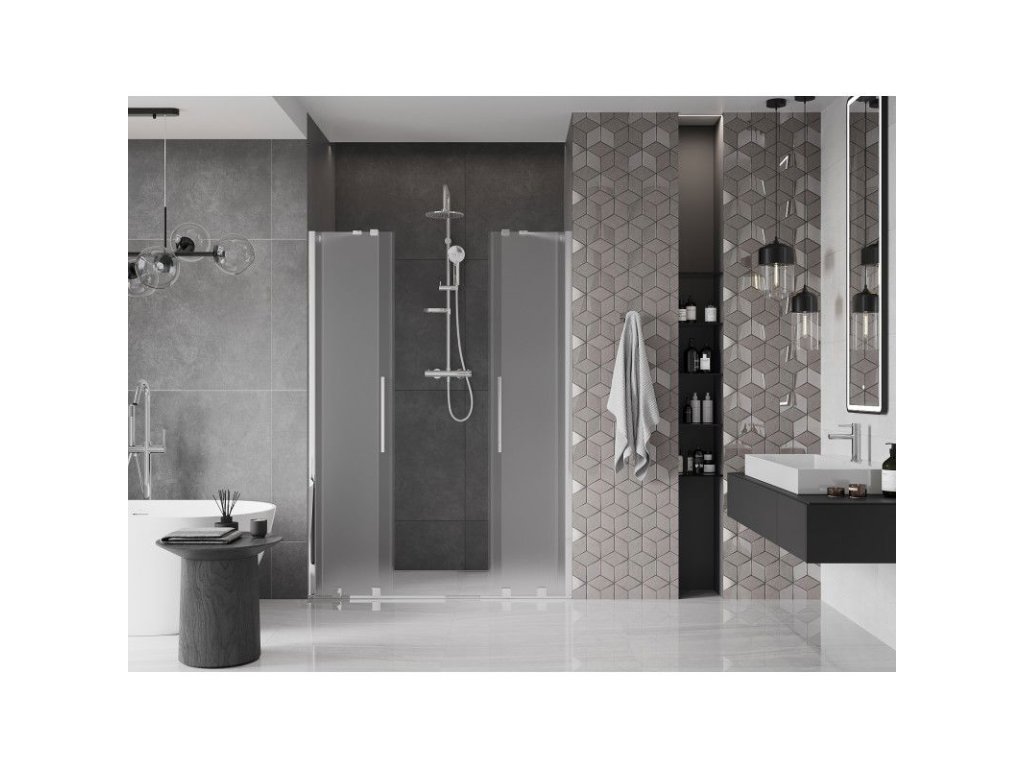 Posuvné sprchové dvere Mexen Velar Duo 150 cm, matné, chróm - 871-150-000-32-01