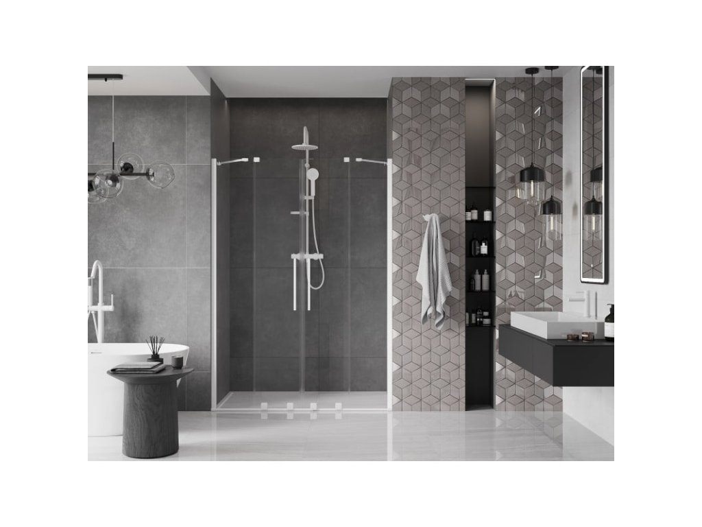 Posuvné sprchové dvere Mexen Velar Duo 150 cm, transparentné, biele - 871-150-000-02-20