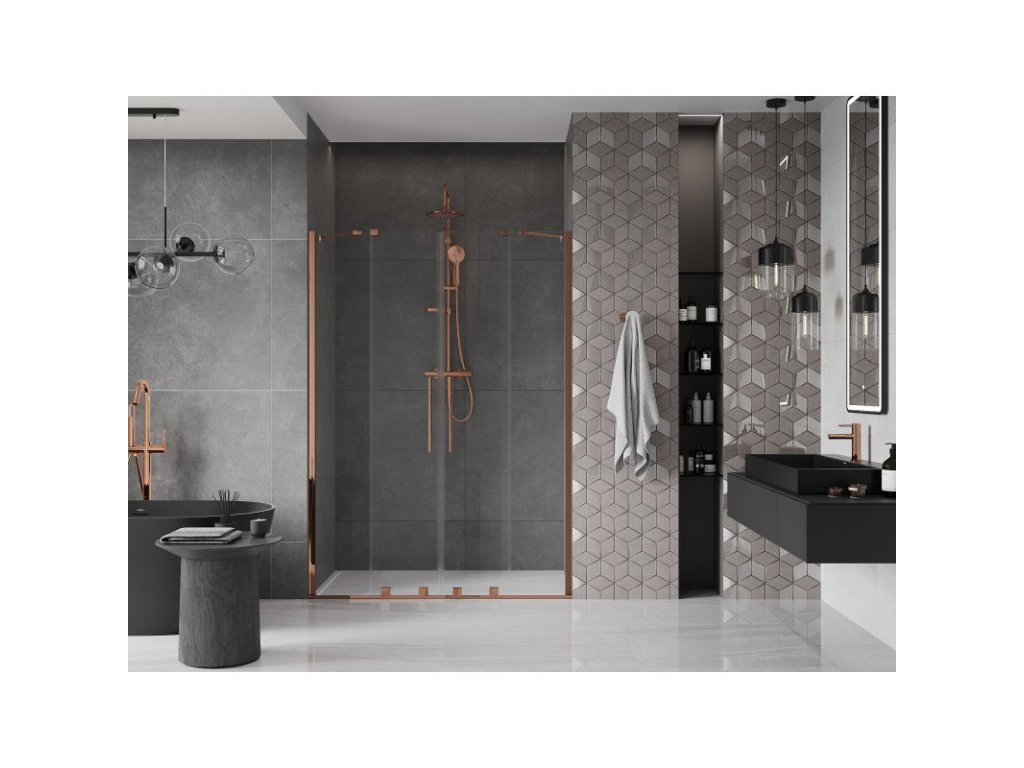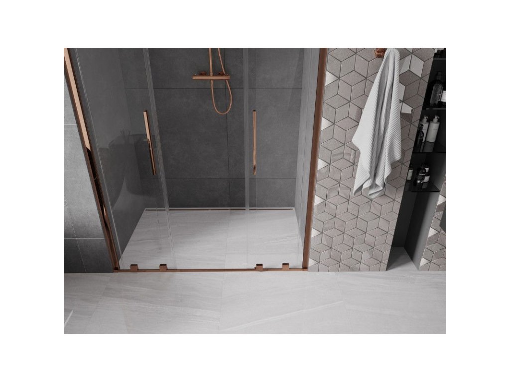 Posuvné sprchové dvere Mexen Velar Duo 150 cm, transparentné, ružové zlato - 871-150-000-02-60