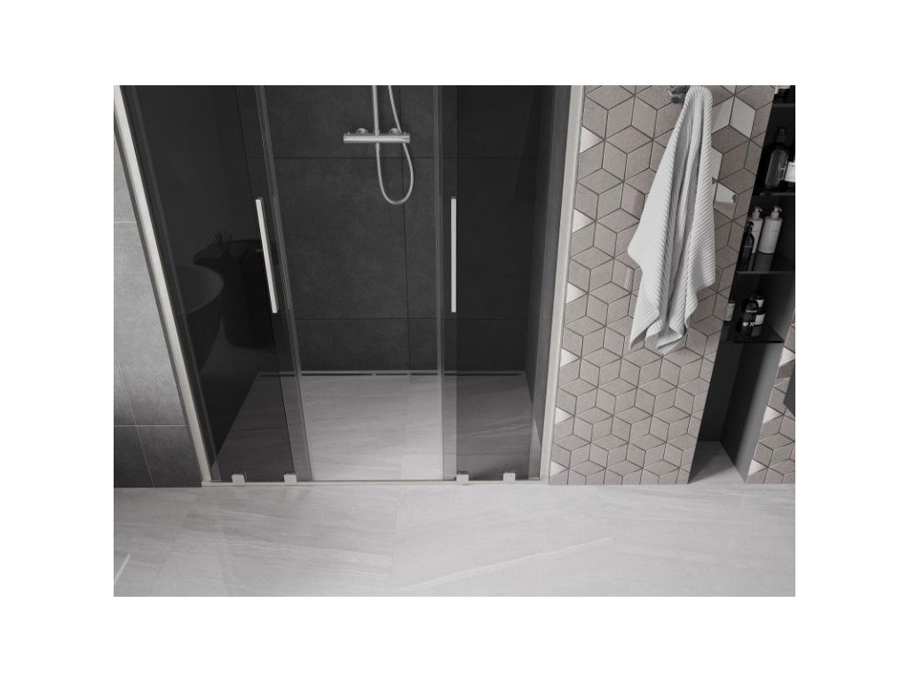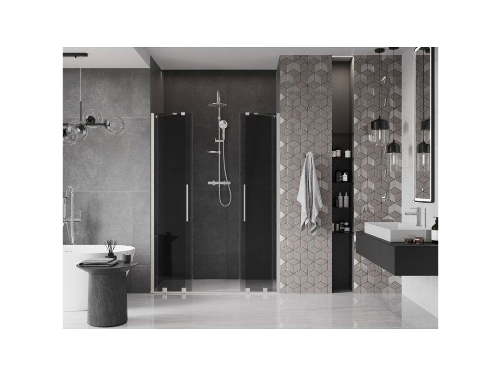 Posuvné sprchové dvere Mexen Velar Duo 160 cm, grafit, brúsený nikel - 871-160-000-42-97