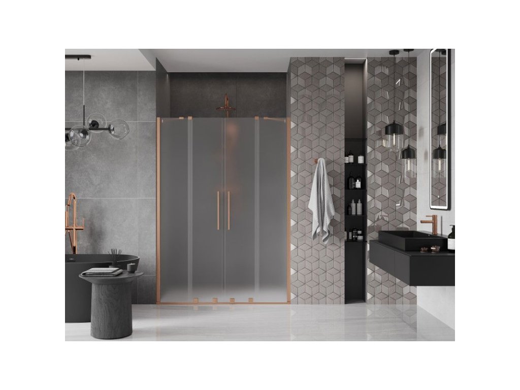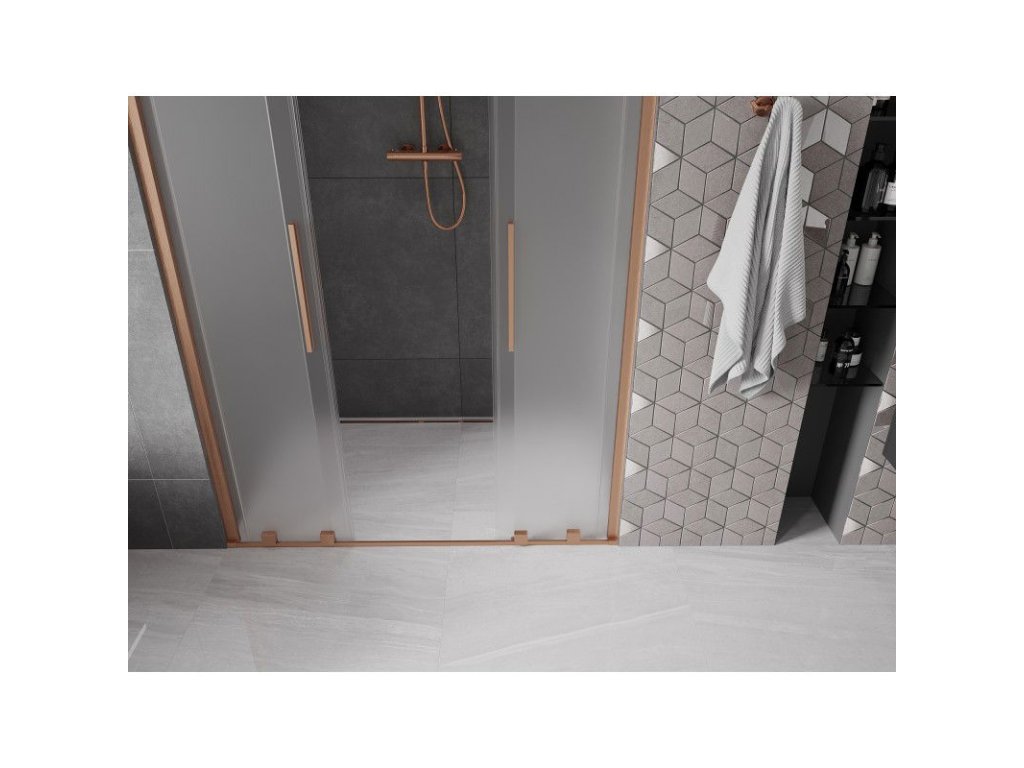 Posuvné sprchové dvere Mexen Velar Duo 160 cm, matné, brúsená meď - 871-160-000-32-65
