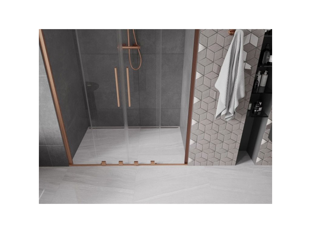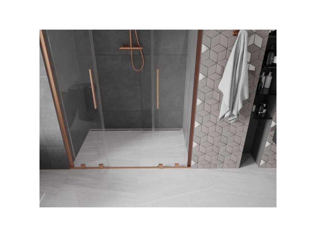 Posuvné sprchové dvere Mexen Velar Duo 160 cm, transparentné, brúsená meď - 871-160-000-02-65