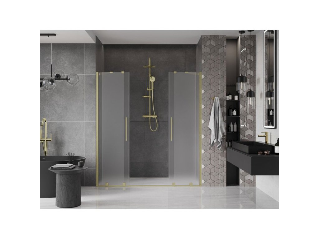 Posuvné sprchové dvere Mexen Velar Duo 180 cm, matné, brúsené zlaté - 871-180-000-32-55