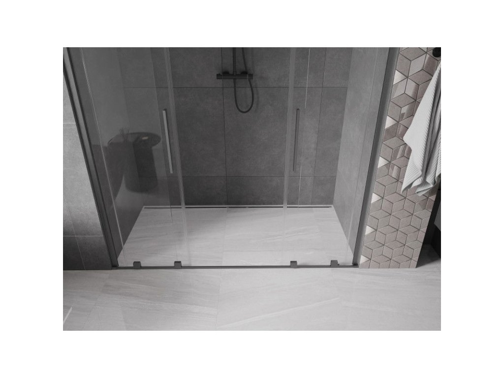 Posuvné sprchové dvere Mexen Velar Duo 180 cm, priehľadné, pištoľovo sivá, kartáčované - 871-180-000-02-66