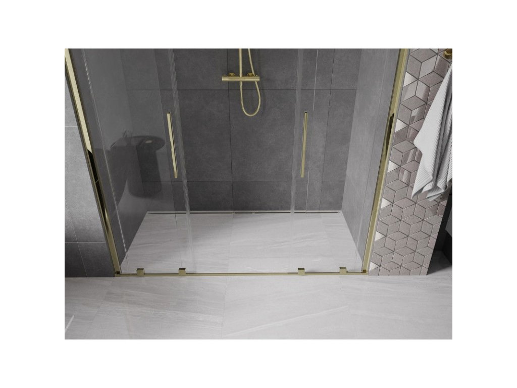 Posuvné sprchové dvere Mexen Velar Duo 180 cm, transparentné, zlaté - 871-180-000-02-50