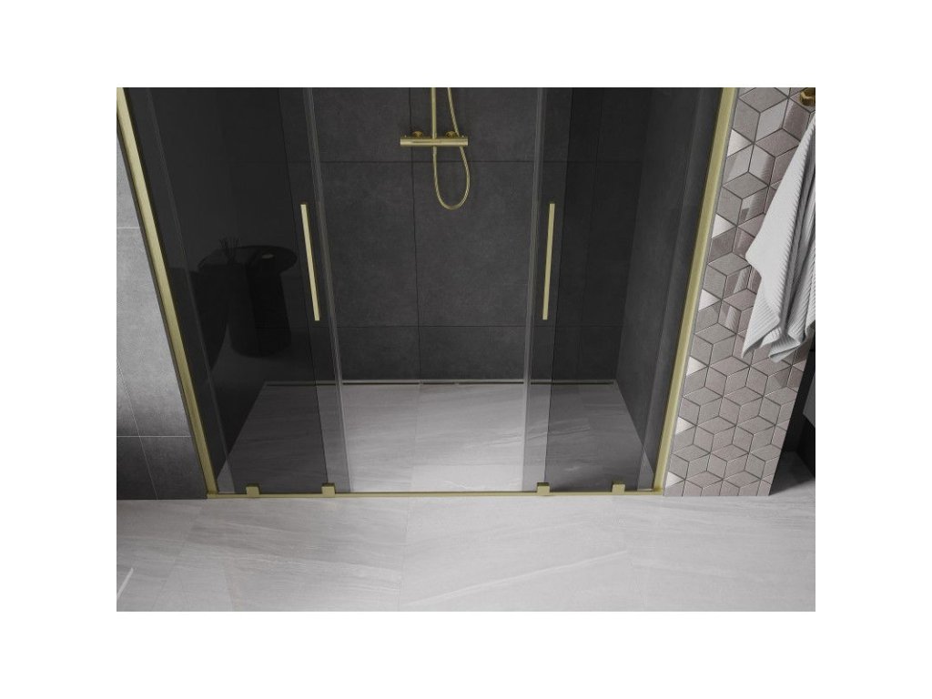 Posuvné sprchové dvere Mexen Velar Duo 200 cm, grafit, brúsené zlato - 871-200-000-42-55