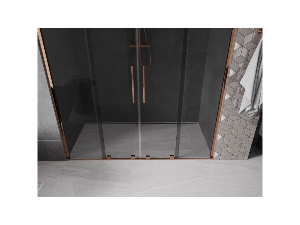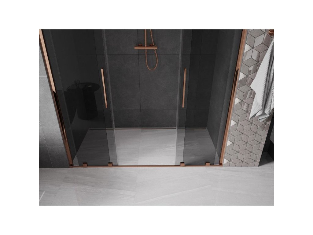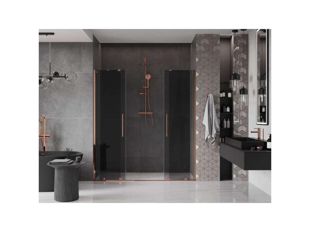 Posuvné sprchové dvere Mexen Velar Duo 200 cm, grafit, ružové zlato - 871-200-000-42-60