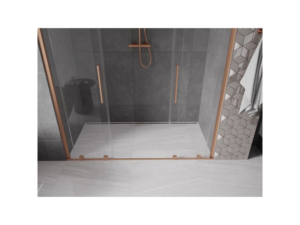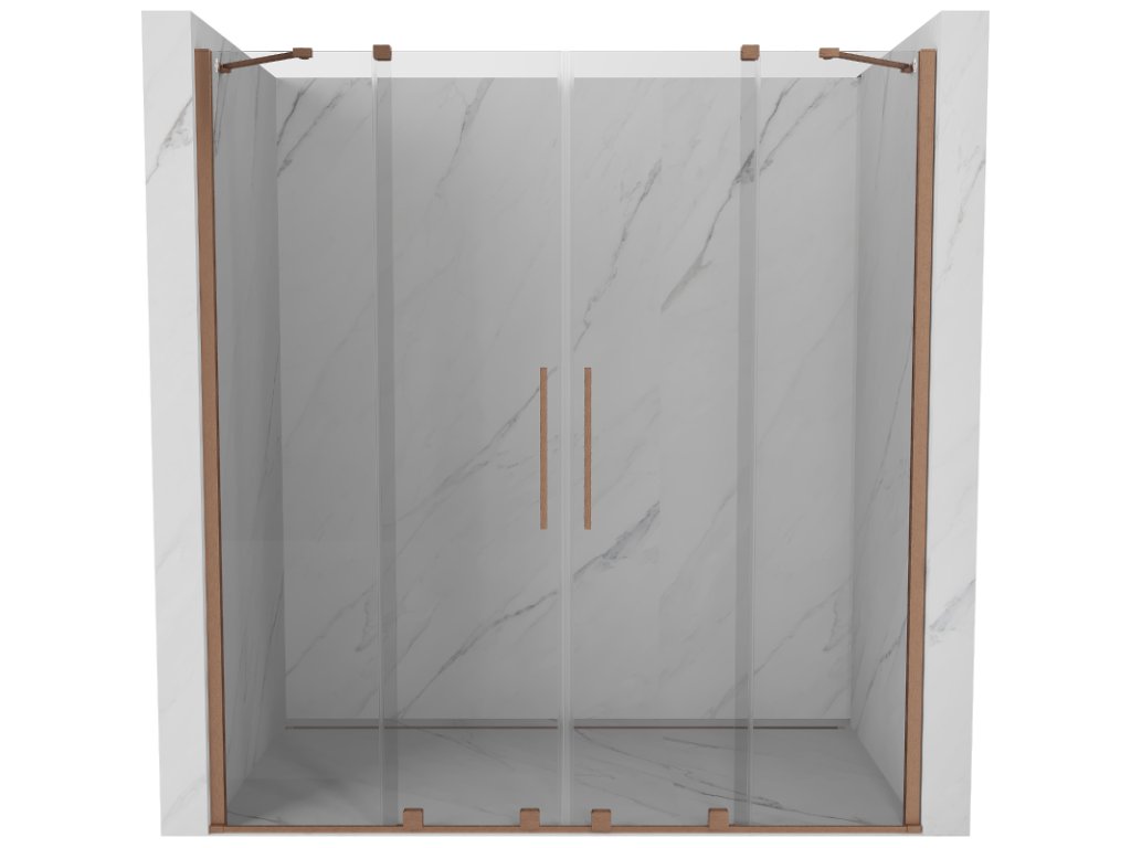 Posuvné sprchové dvere Mexen Velar Duo 200 cm, transparentné, brúsená meď - 871-200-000-02-65