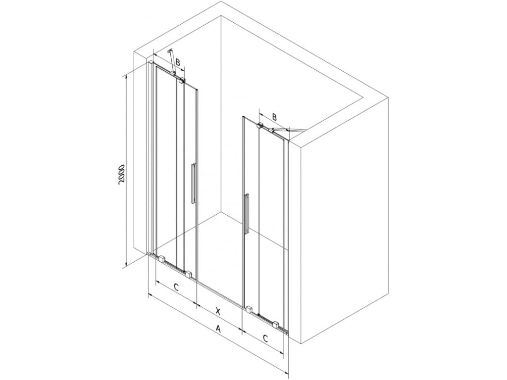 Posuvné sprchové dvere Mexen Velar Duo 200 cm, transparentné, čierne - 871-200-000-02-70