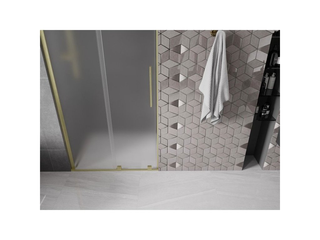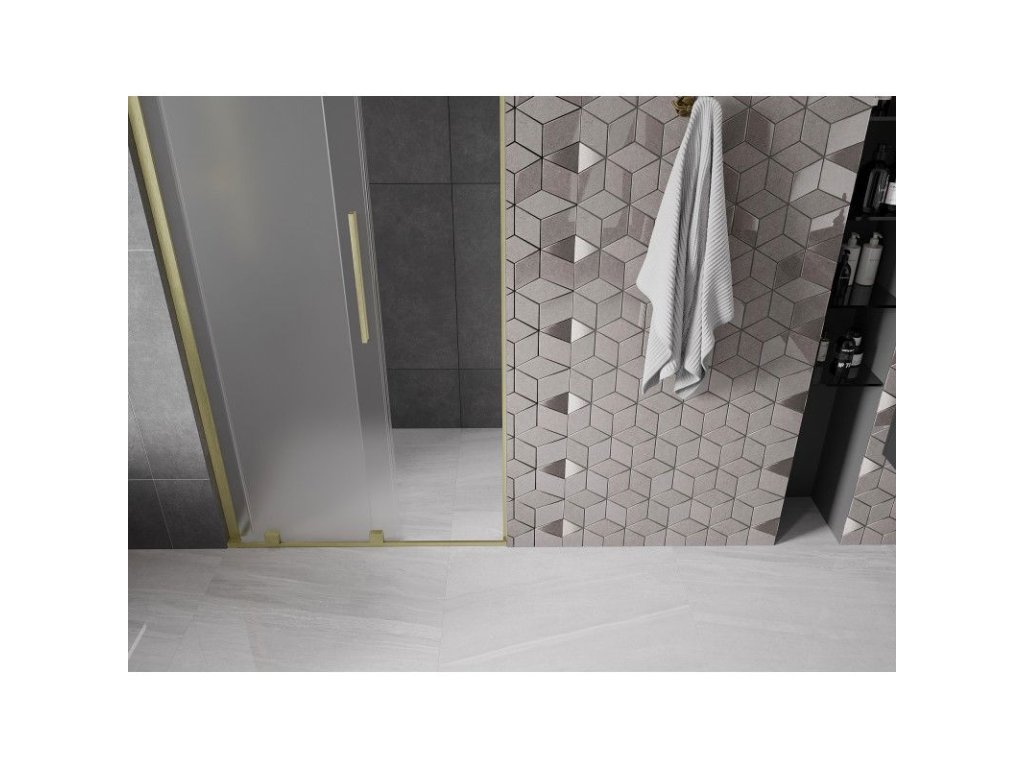 Posuvné sprchové dvere Mexen Velar L 90 cm, matné, brúsené zlato - 871-090-003-31-55