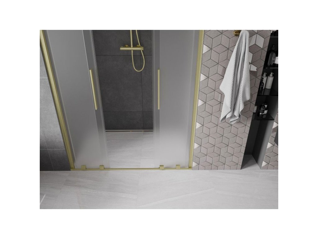 Posuvné sprchové dvere Mexen Velar L Duo 140 cm, matné, brúsené zlato - 871-140-003-32-55