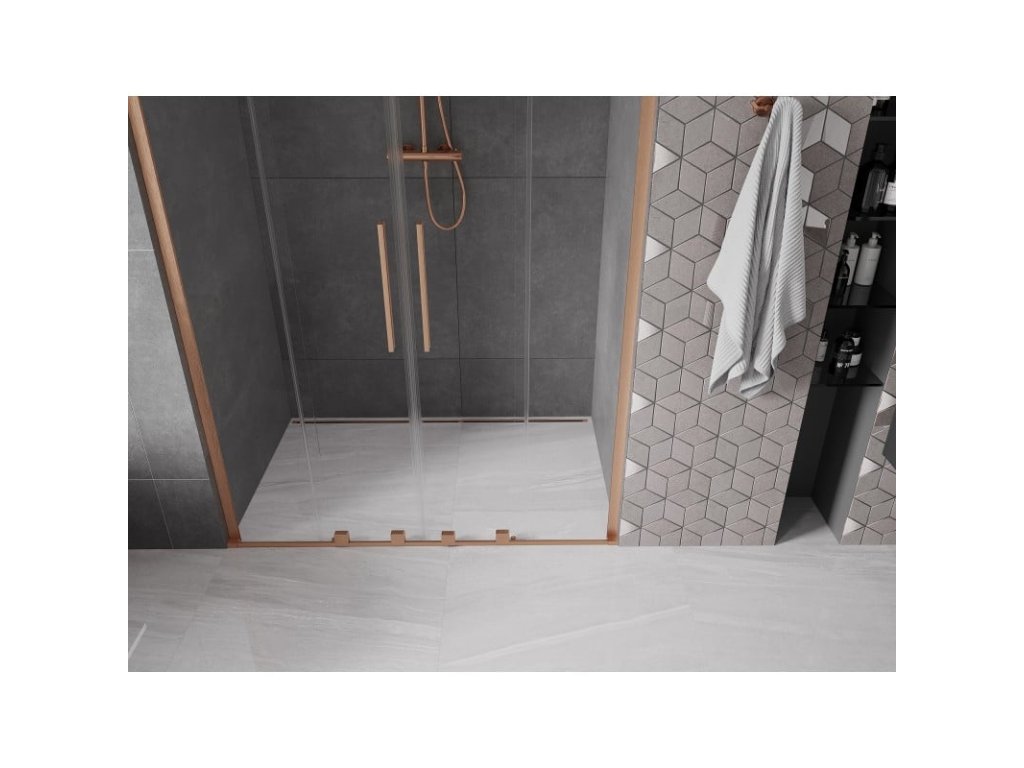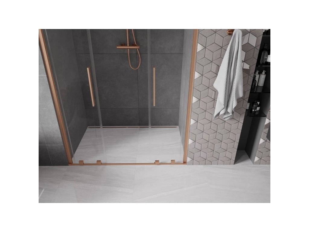 Posuvné sprchové dvere Mexen Velar L Duo 140 cm, transparentné, brúsená meď - 871-140-003-02-65