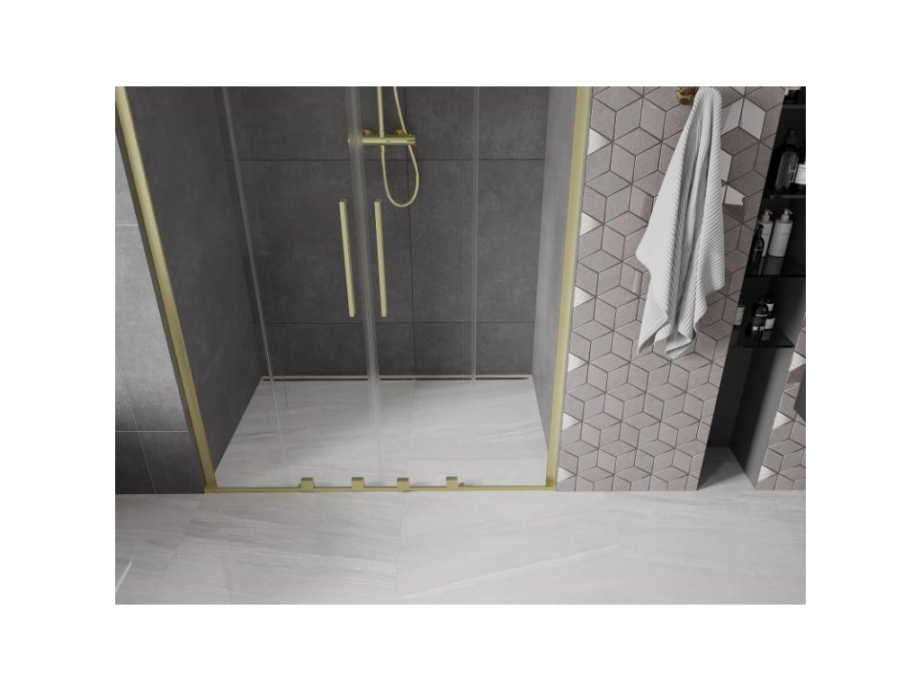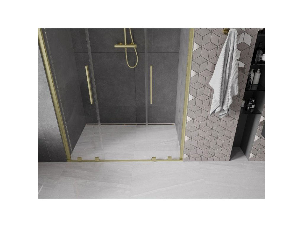 Posuvné sprchové dvere Mexen Velar L Duo 140 cm, transparentné, brúsené zlaté - 871-140-003-02-55