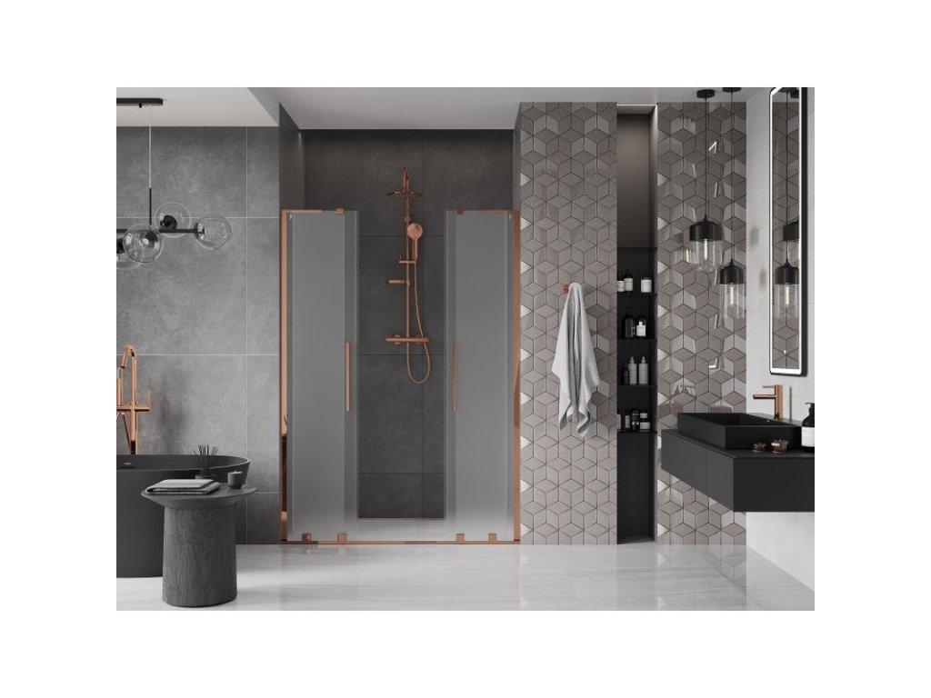 Posuvné sprchové dvere Mexen Velar L Duo 150 cm, matné, ružové zlato - 871-150-003-32-60