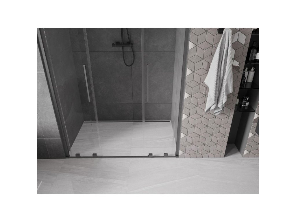Posuvné sprchové dvere Mexen Velar L Duo 150 cm, priehľadné, pištoľovo šedé kartáčované - 871-150-003-02-66