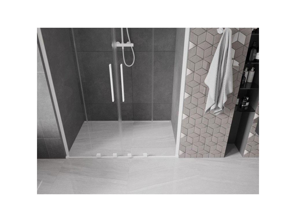 Posuvné sprchové dvere Mexen Velar L Duo 150 cm, transparentné, biele - 871-150-003-02-20