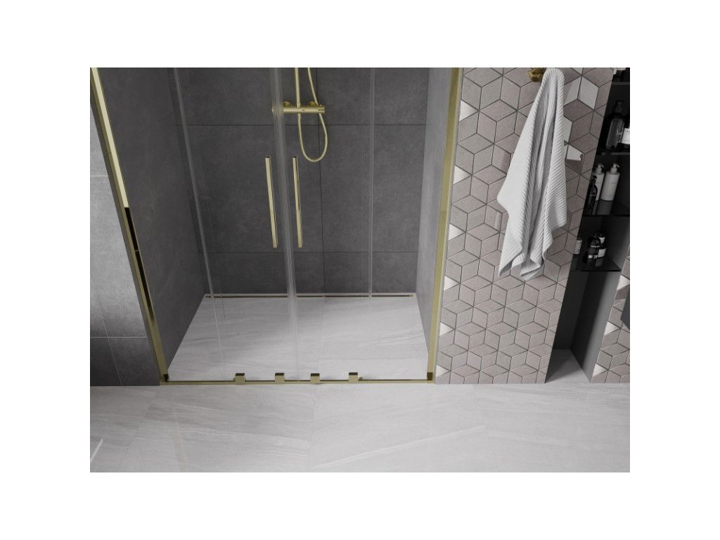 Posuvné sprchové dvere Mexen Velar L Duo 150 cm, transparentné, zlaté - 871-150-003-02-50