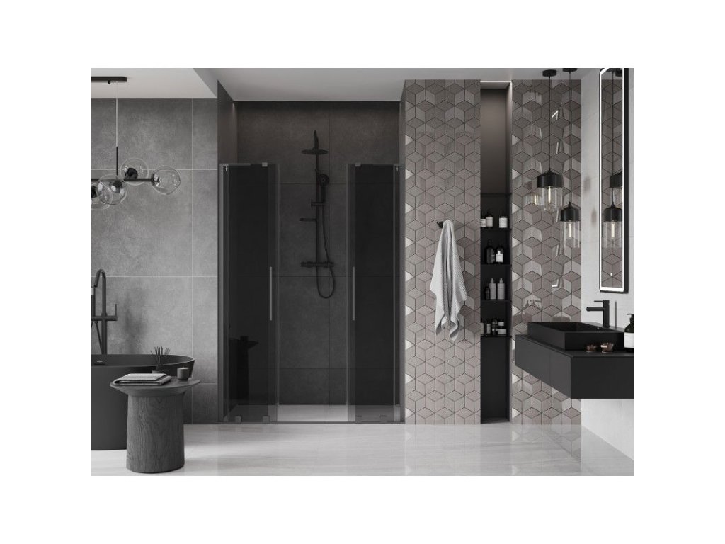 Posuvné sprchové dvere Mexen Velar L Duo 160 cm, grafit, pištoľový kov - 871-160-003-42-95