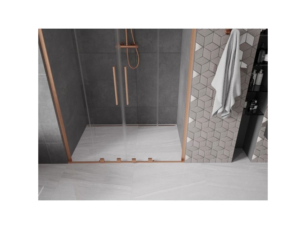 Posuvné sprchové dvere Mexen Velar L Duo 160 cm, transparentné, brúsená meď - 871-160-003-02-65