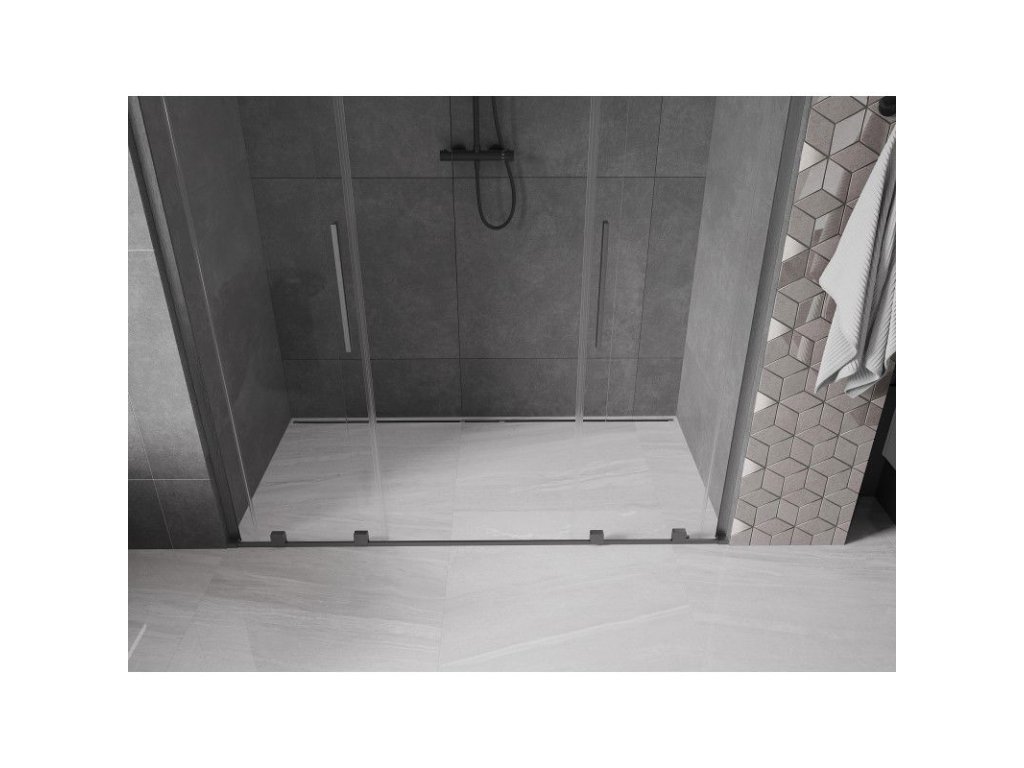 Posuvné sprchové dvere Mexen Velar L Duo 200 cm, priehľadné, pištoľovo šedé, kartáčované - 871-200-003-02-66