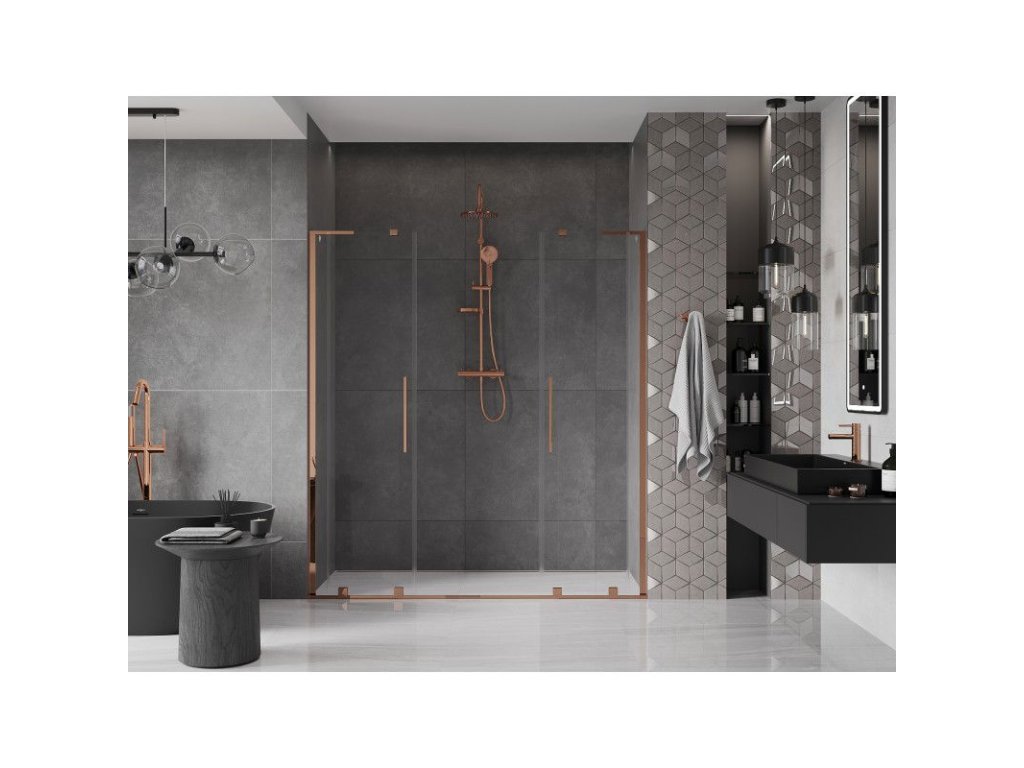 Posuvné sprchové dvere Mexen Velar L Duo 200 cm, transparentné, ružové zlato - 871-200-003-02-60
