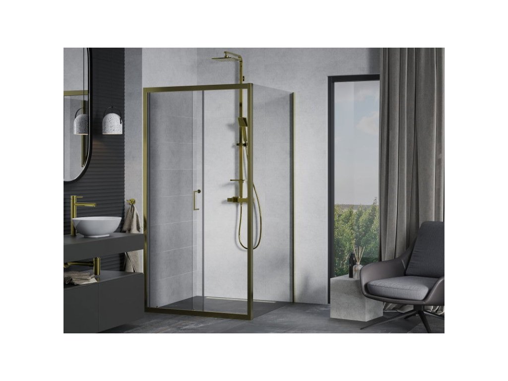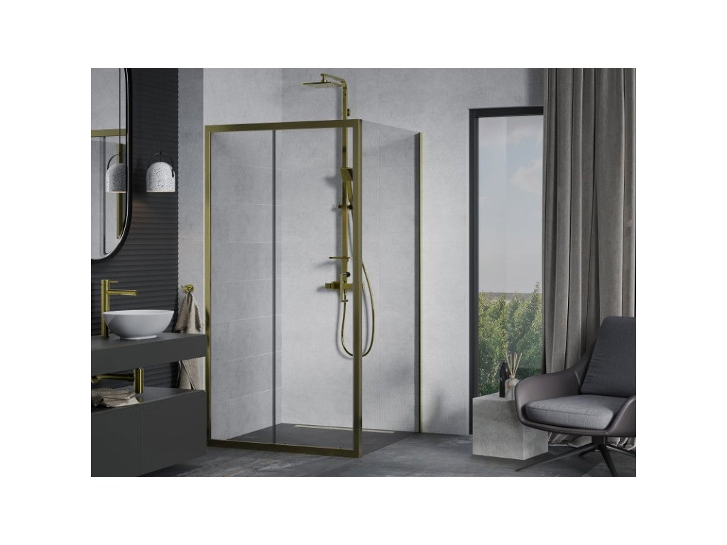 Posuvný sprchový kút Mexen Apia 100 x 100 cm, transparentný, zlatý - 840-100-100-50-00