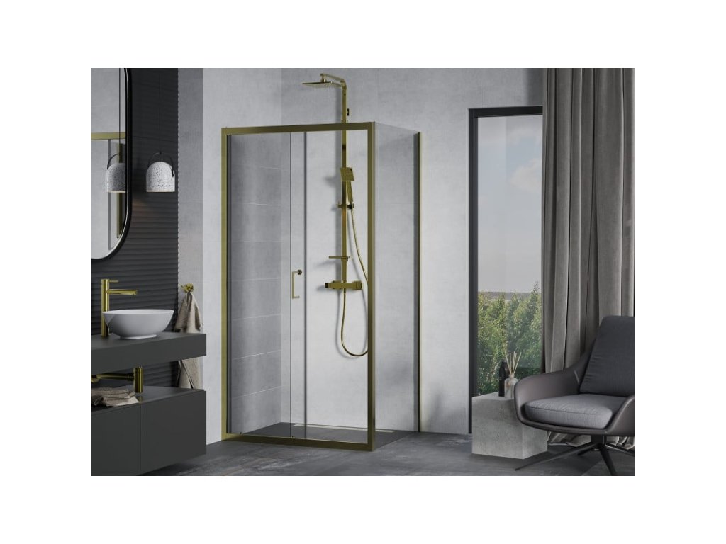 Posuvný sprchový kút Mexen Apia 120 x 100 cm, transparentný, zlatý - 840-120-100-50-00