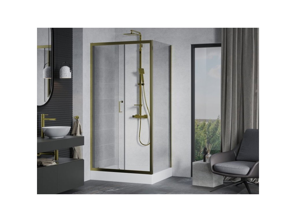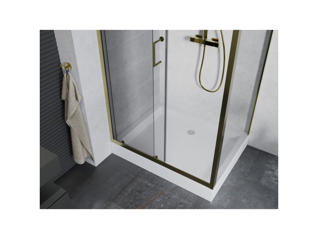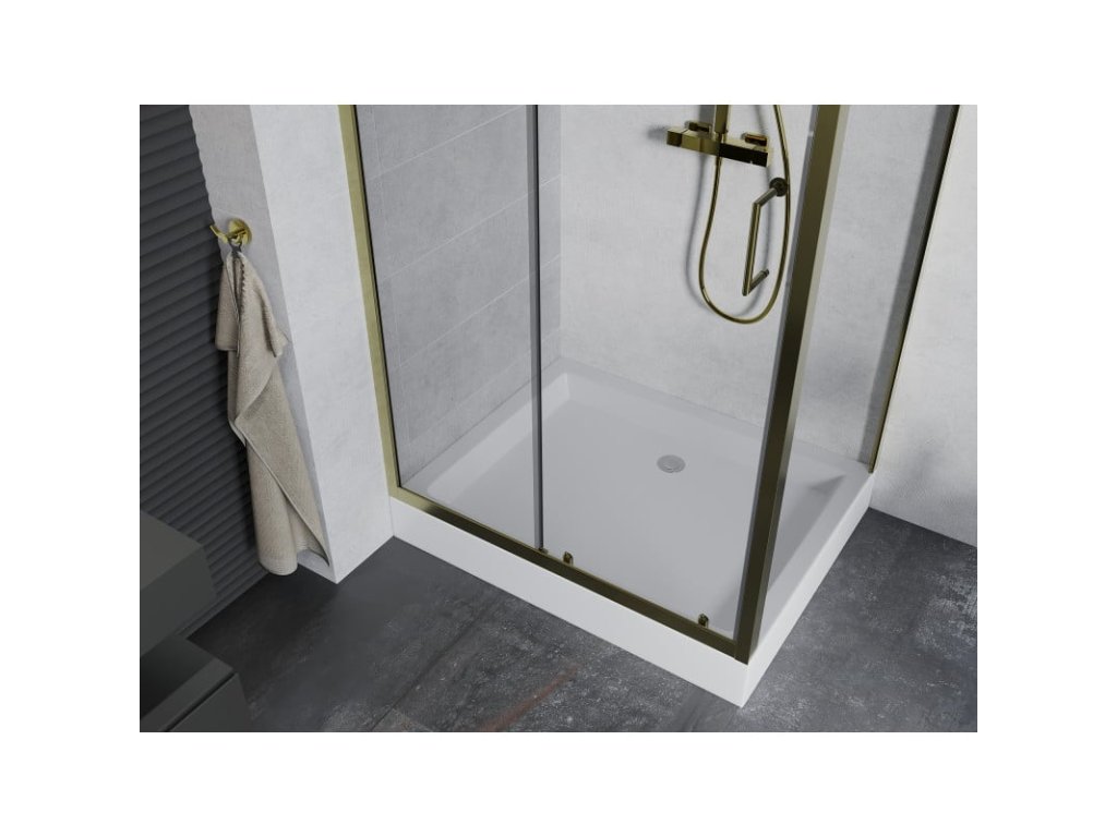 Posuvný sprchový kút Mexen Apia 120 x 80 cm, transparentný, zlatý + sprchová vanička Rio - 840-120-080-50-00-4510