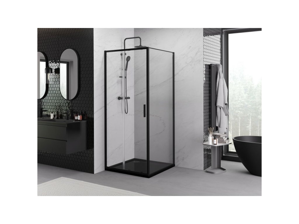 Posuvný sprchový kút Mexen Exo 90 x 90 cm, priehľadný, čierny - 8151-090-090-70-00
