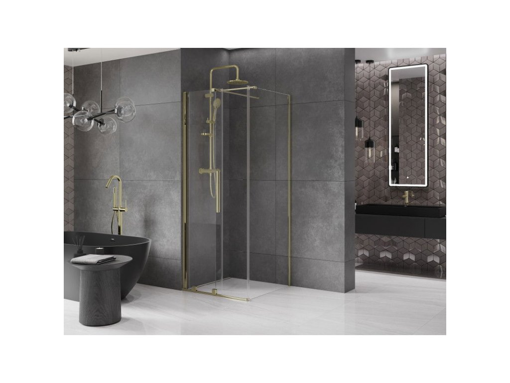 Posuvný sprchový kút Mexen Velar 100 x 100 cm, transparentný, zlatý - 871-100-100-01-50