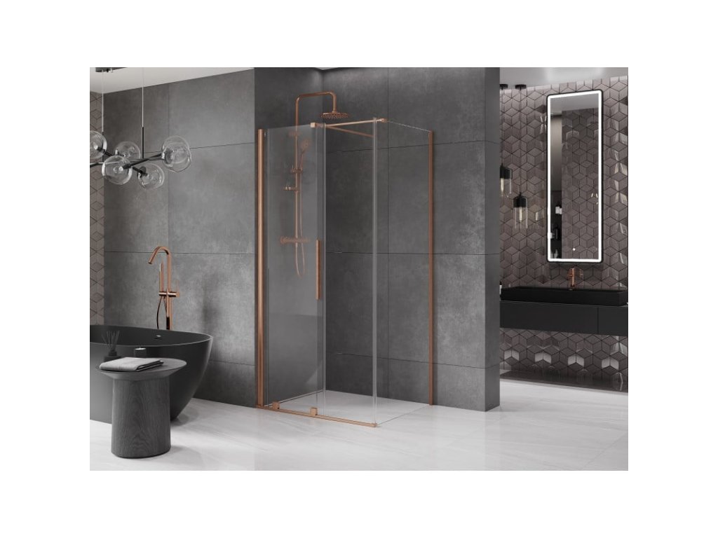 Posuvný sprchový kút Mexen Velar 120 x 110 cm, transparentný, brúsená meď - 871-120-110-01-65