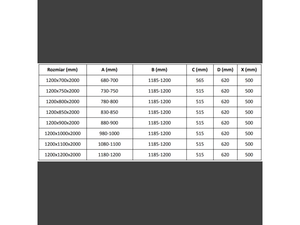 \nRozmery: 120x110 cm (dvere 120 cm, stena 110 cm)