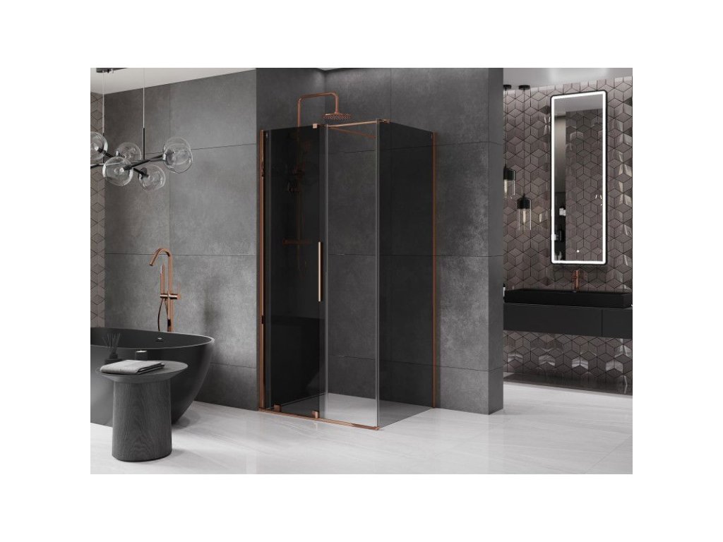 Posuvný sprchový kút Mexen Velar 120 x 85 cm, grafit, ružové zlato - 871-120-085-41-60
