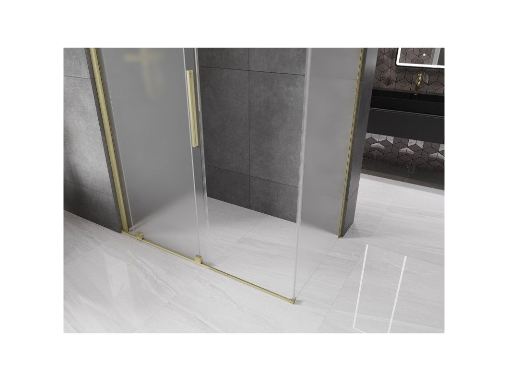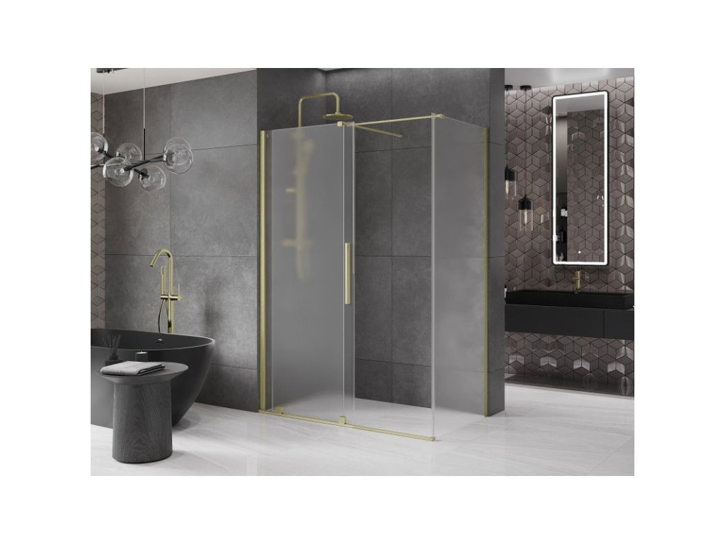 Posuvný sprchový kút Mexen Velar 130 x 75 cm, matný, brúsené zlato - 871-130-075-31-55